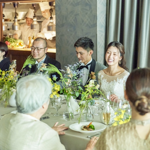 家族や大切なご友人が集い、慶び、笑顔があふれる1日。ゲストとの距離が近く、一人ひとりを丁寧におもてなしできるのも少人数ウェディングの魅力。